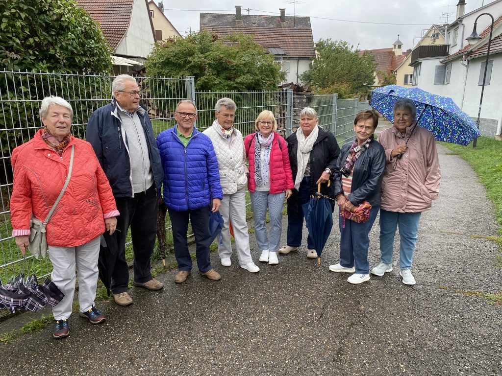 Mit Regenschirm gingen wir am Rathaus vorbei auf direktem Weg zum Bäckerei-Cafe Bayer, wo wir Plätze reserviert hatten.